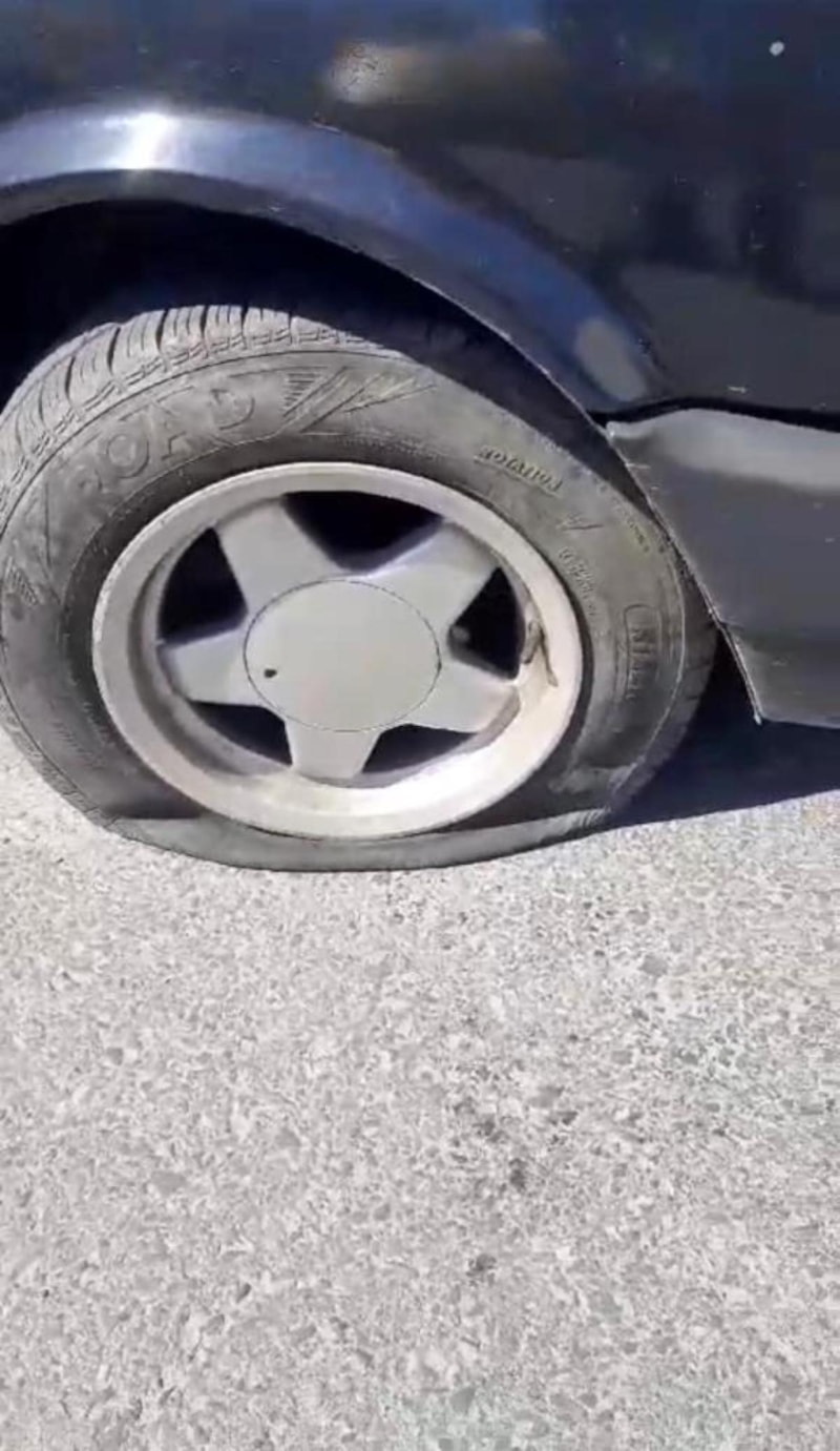 Sabah aracının yanına gittiğinde lastiklerin sönük olduğunu fark eden yabancı uyruklu şahıs, gördüğü manzara karşısında şoke oldu.