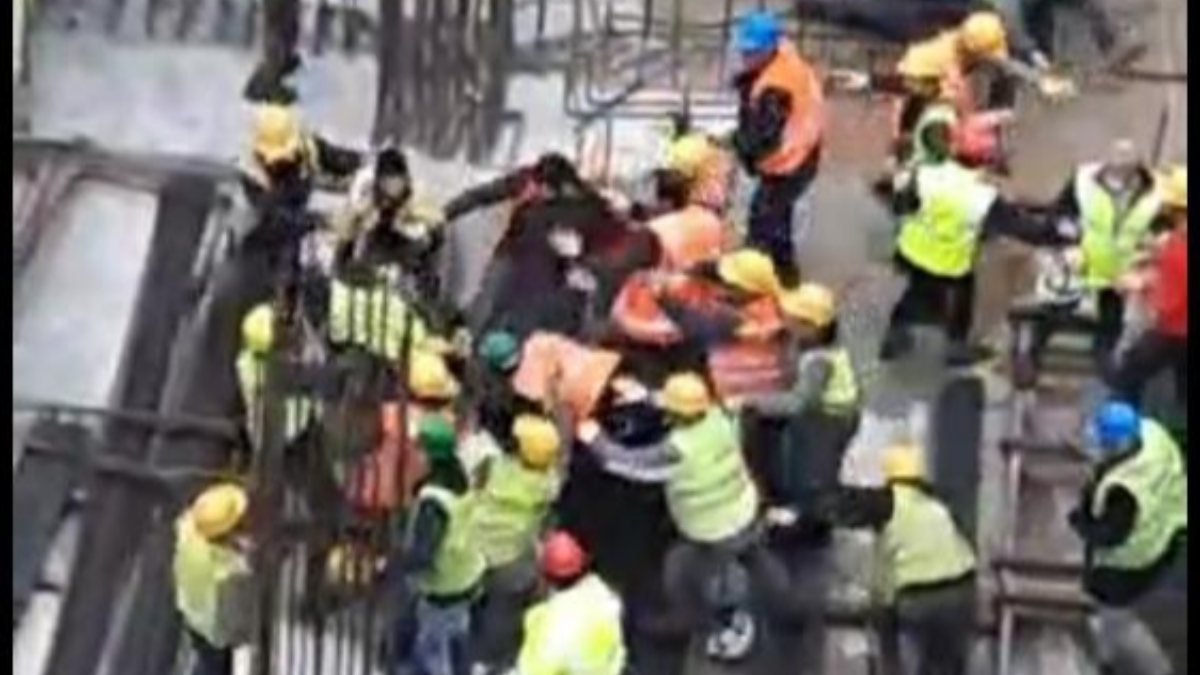İstanbul'da inşaat işçilerinin yumruk yumruğa kavgası VİDEO