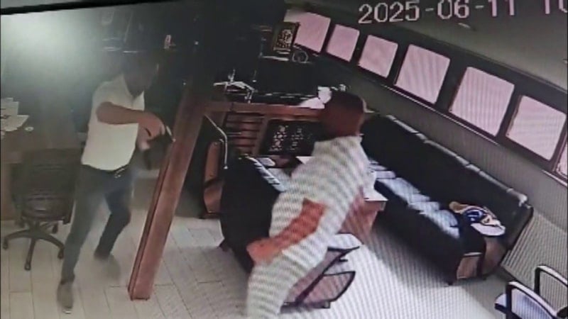 Olay anı, ofiste bulunan güvenlik kamerasına yansıdı.