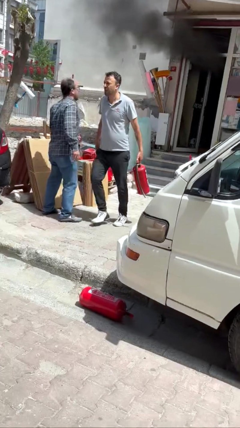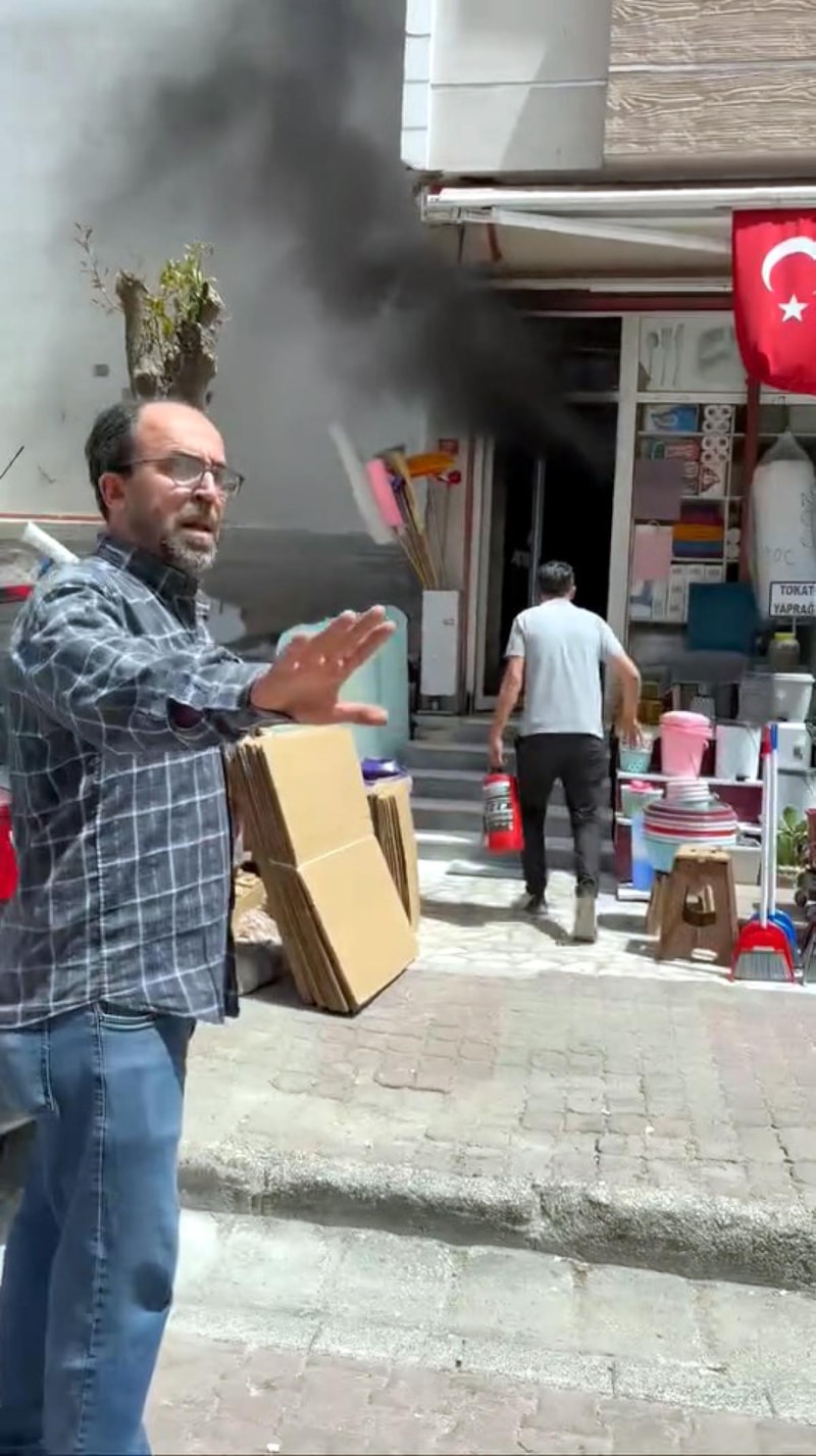 Dursun Korkmaz’a ait ambalaj malzemesi satılan iş yerinden henüz bilinmeyen bir nedenle dumanlar yükselmeye başladı.