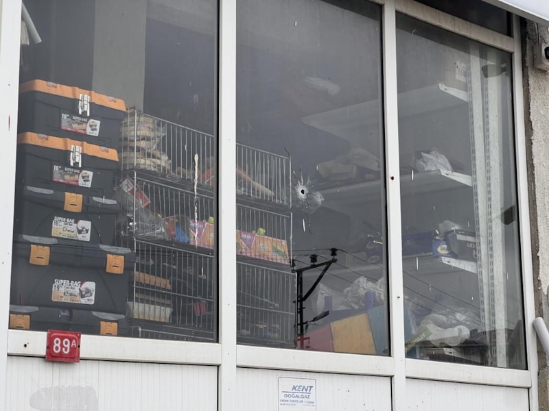 Saldırı sırasında çevredeki vatandaşlar panik içinde kaçışırken, dükkanın kapalı olması olası bir faciayı önledi.