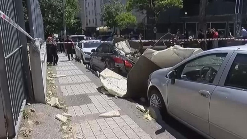 Görüntülerde, kazanın parçalarının havaya fırlayıp bir sokak uzaktaki park halindeki araçların üzerine düştüğü anlar yer aldı.