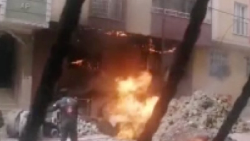 Patlamanın ardından çıkan yangında alevler, sokaktaki 5 katlı binanın bodrum ve giriş katına sıçradı.