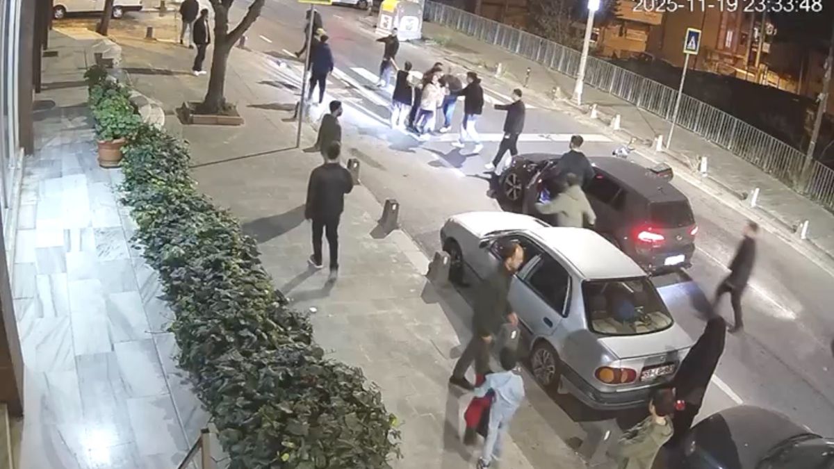 Yaşanan kavga ve sinir krizi anı, çevredeki bir iş yerinin güvenlik kamerasına yansıdı.
