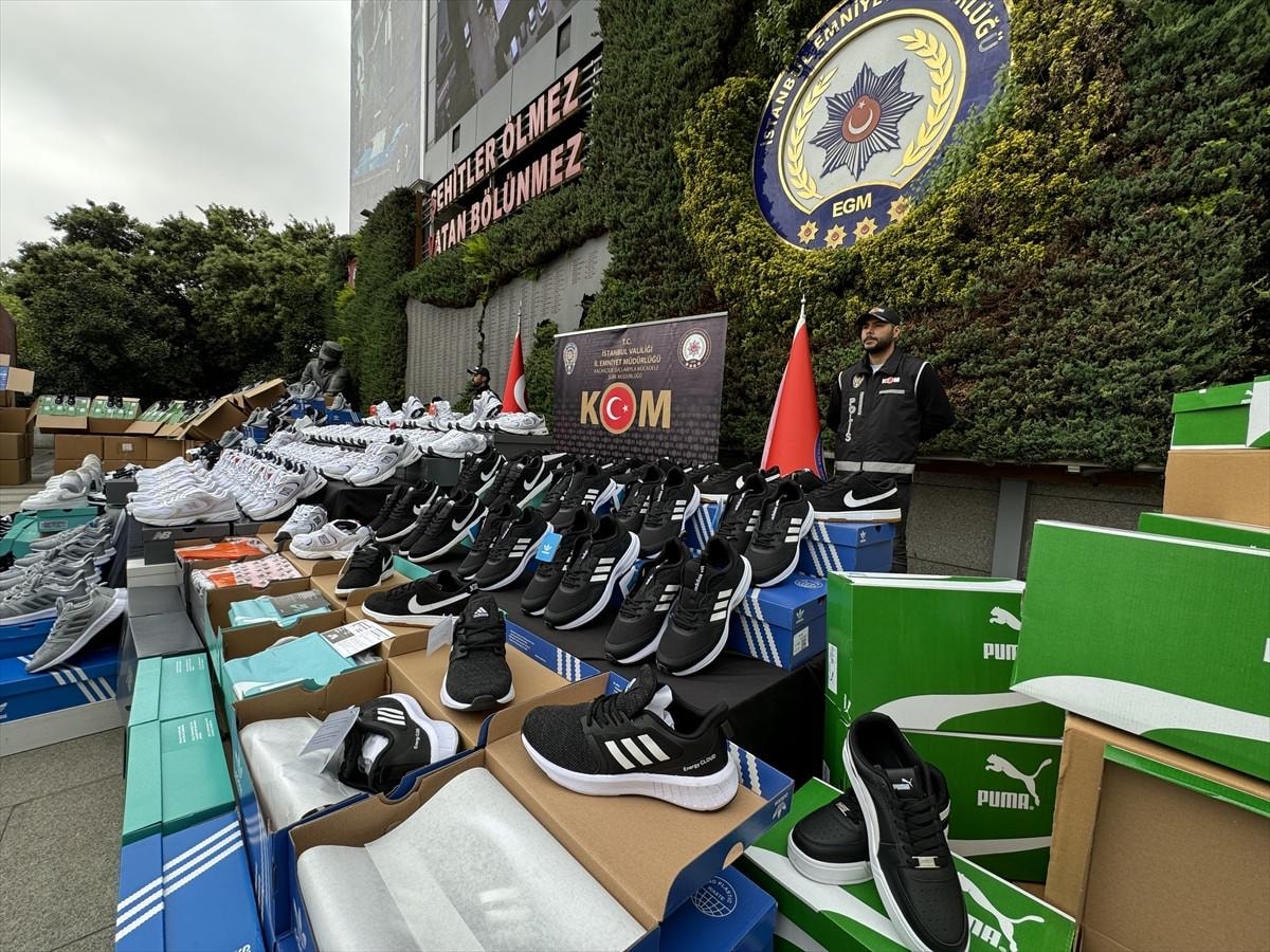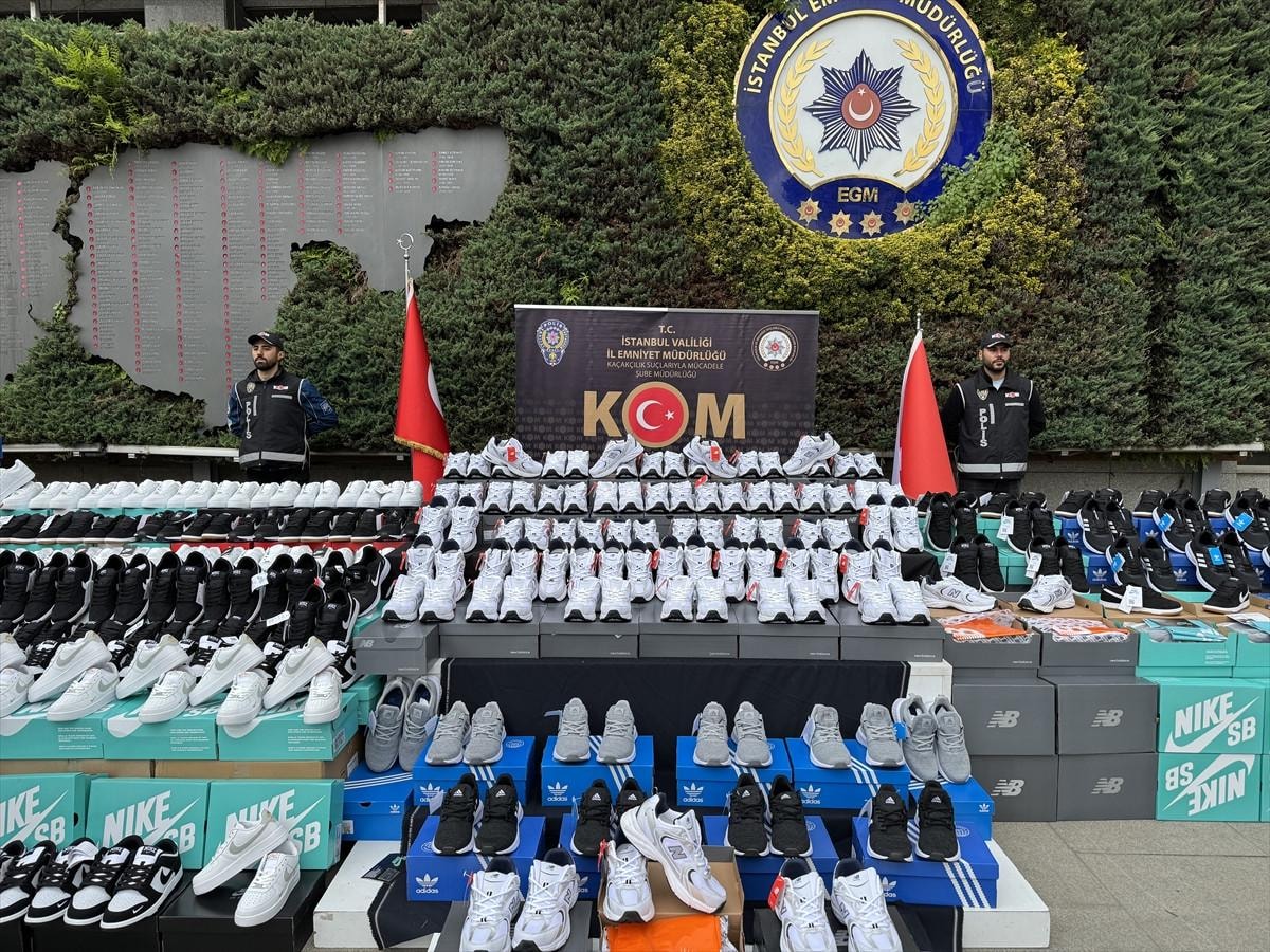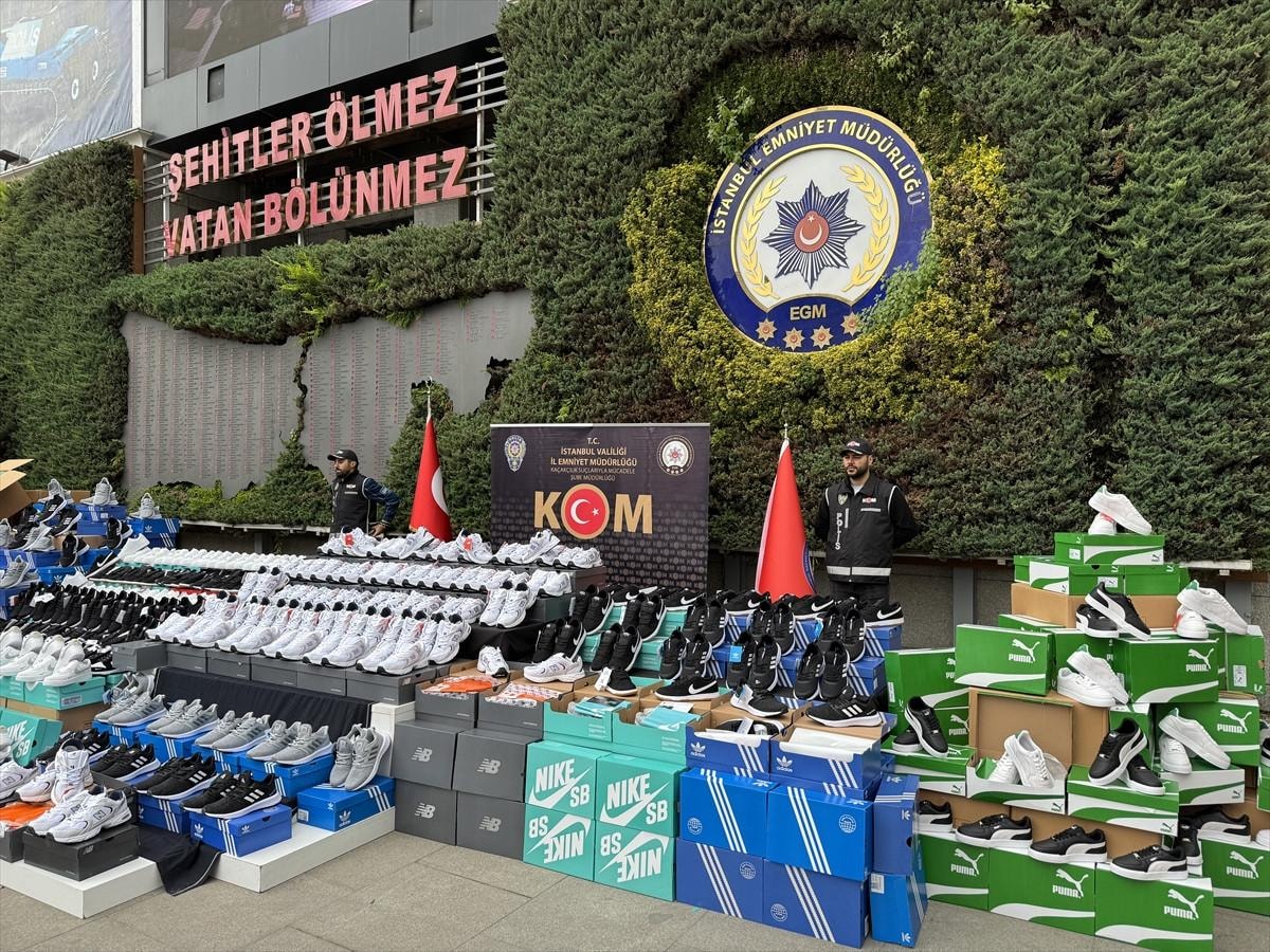 Yürütülen tahkikat işlemleri devam ederken el konulan binlerce çift ayakkabı, İstanbul Emniyet Müdürlüğü’nde sergilendi.