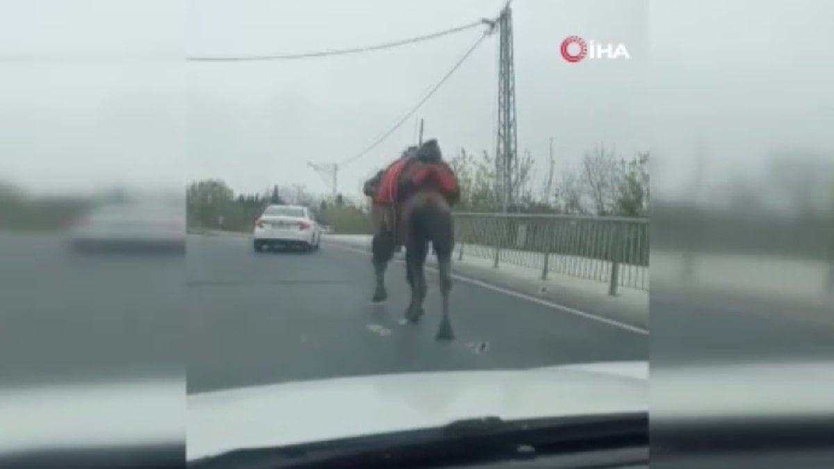 Araçların arasından koşarak kaçmaya çalışan deve, çevredeki sürücüleri şaşkınlığa uğrattı.