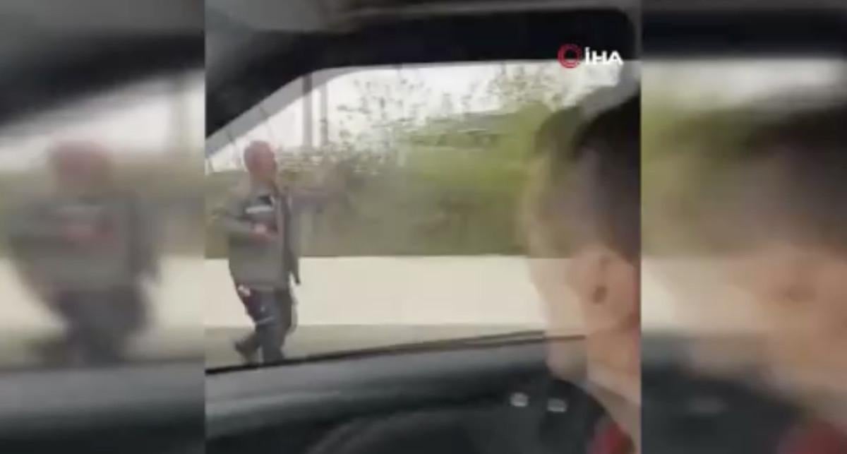 Bir süre sonra vatandaşlar, araçlarıyla devenin önünü kesti.