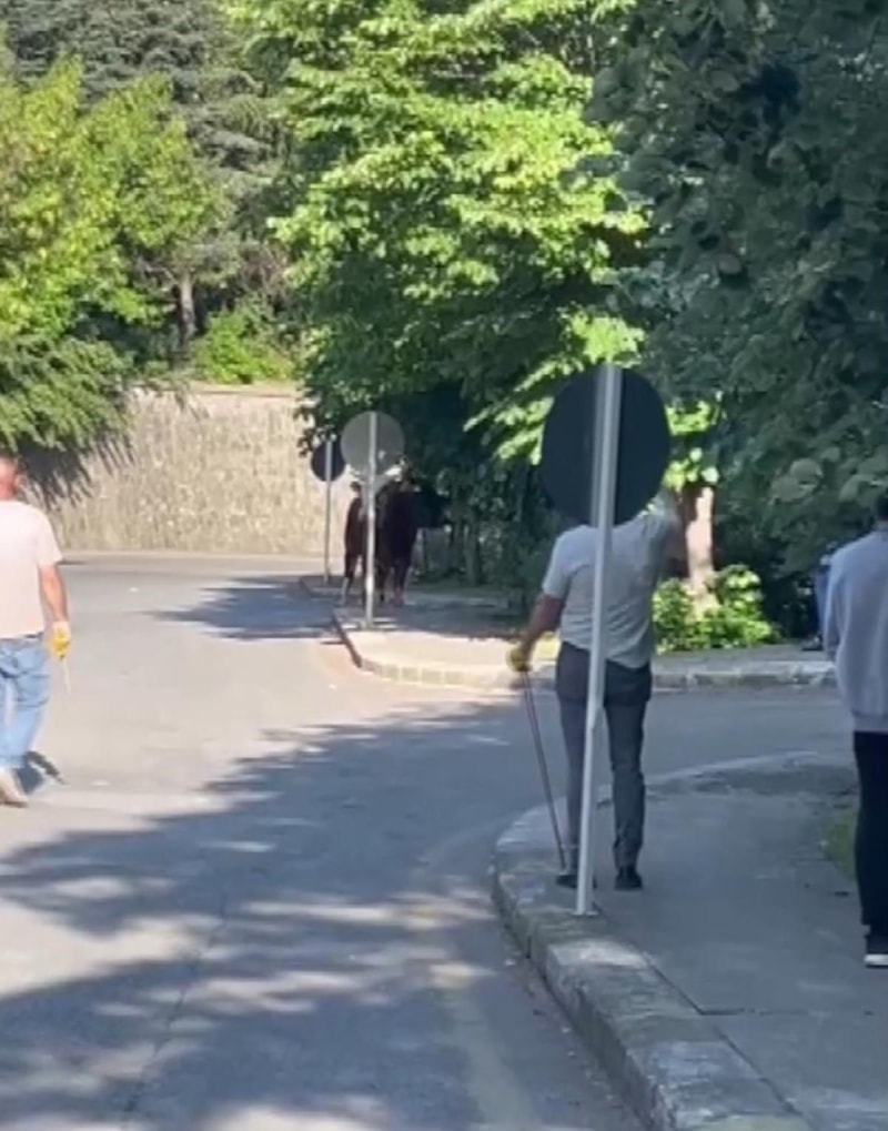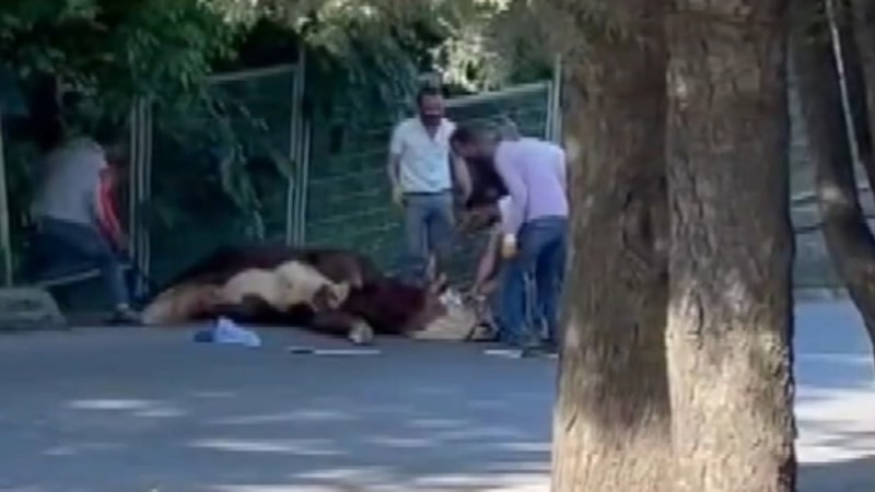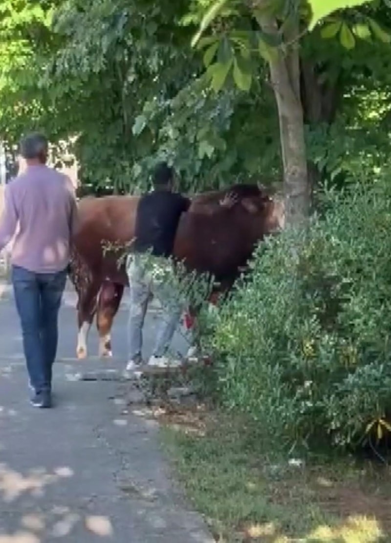 Kurbanın sahibi ve çevredekiler, paniğe neden olan boğayı yakalamak için seferber oldu.