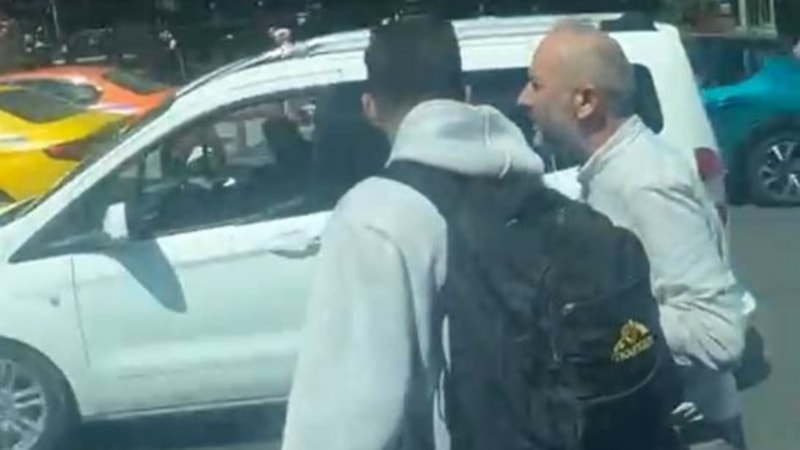 Duruma sinirlenen yolcu, otobüsün önünü kesti ve geç kaldığını belirterek, şoföre hakaretlerde bulundu.