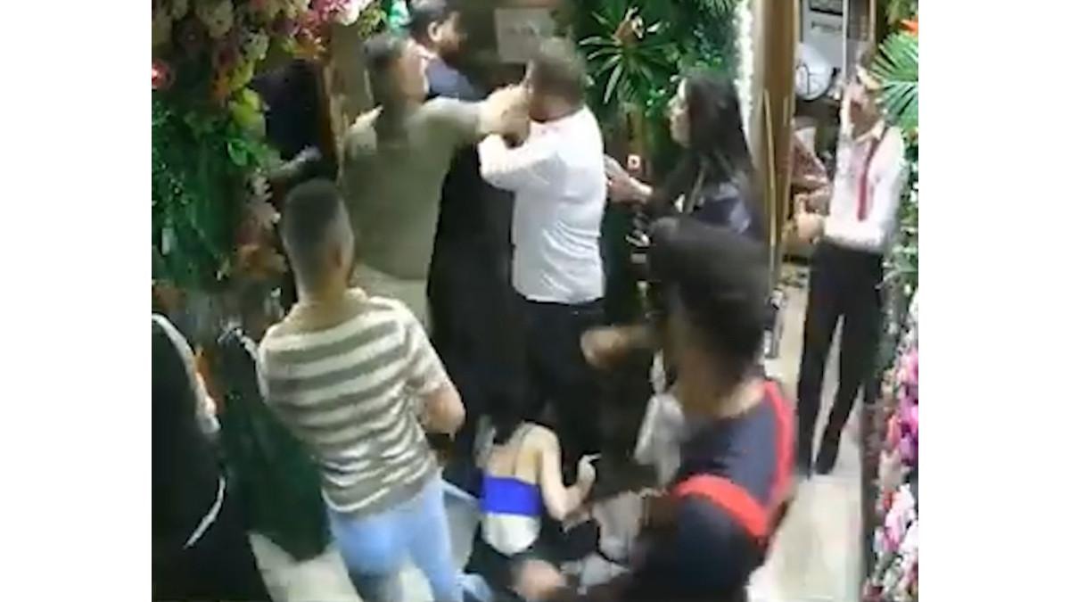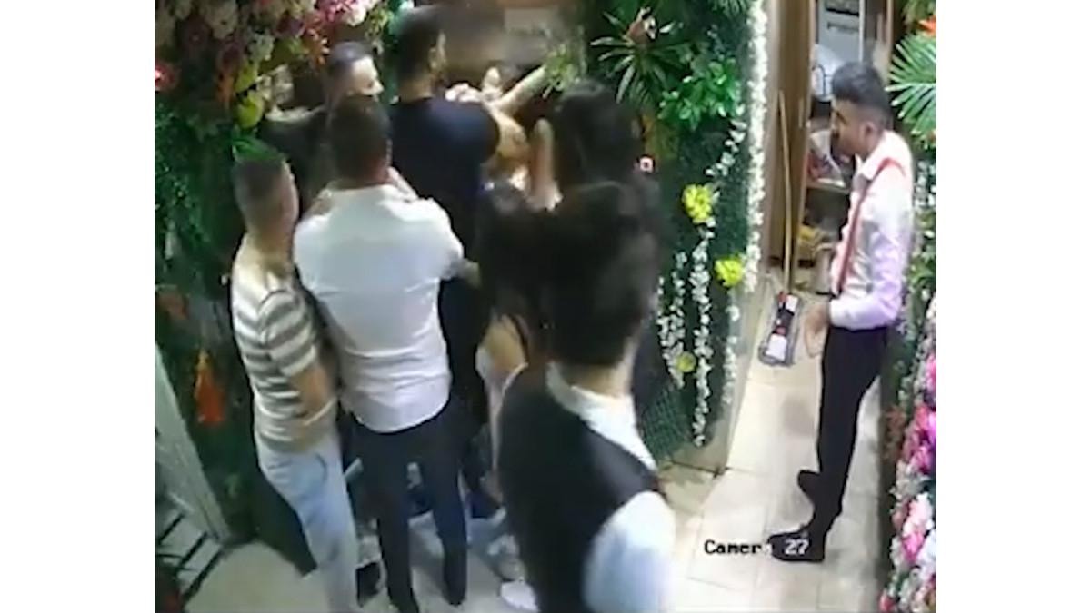 Mekanın koridorunda yaşanan ve güvenlik kamarası tarafından da saniye saniye kaydedilen tartışma kısa süre içerisinde kavgaya dönüştü ve tartışmaya dahil olan kadınların darbedildiği görüldü.