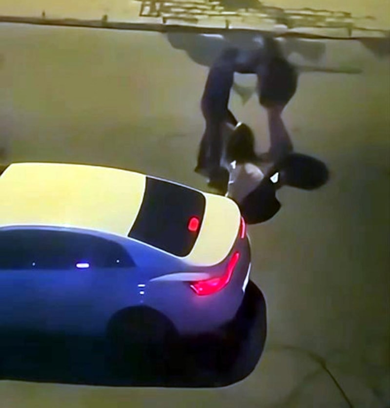 Kadının darbedildiği anlar, çevre sakinlerinin cep telefonu kamerasına yansıdı. Kadın darbedildiği sırada yoldan geçen bir otomobilin sürücüsü olayı fark edip durdu.
