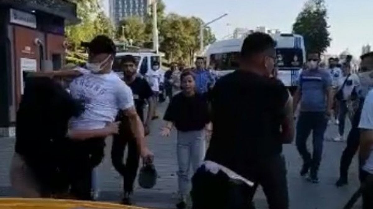 Çıkan kavgada, bir İBB zabıtası satıcılardan birini tartaklarken, başka bir zabıta da bir kadına uçan tekme atmıştı.