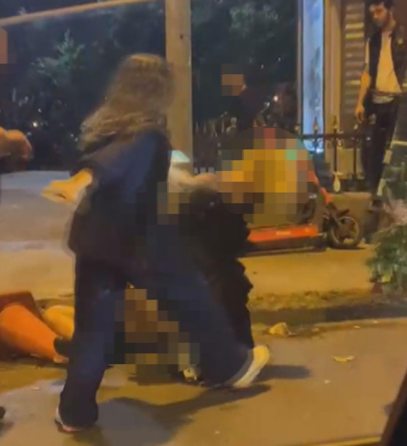 Olayda bir kadın, diğer 2 kadını yere düşürerek yumrukladı.