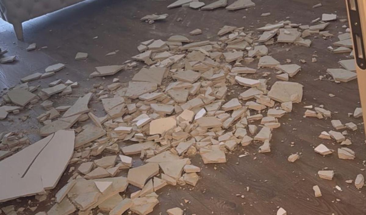 Olayla ilgili konuşan Tuğçe Alpay, "4 gün önce çok şiddetli bir sesle uyandık. Salona geldiğimde bütün tavanın yere düştüğünü gördüm. İlk yaptığım şey yere eğilip aldığım taşın ağırlığına bakmaktı. Muhtemelen 1 saat sonra bu olay olmuş olsaydı, çok daha kötü bir şekilde sonuçlanacaktı" dedi.