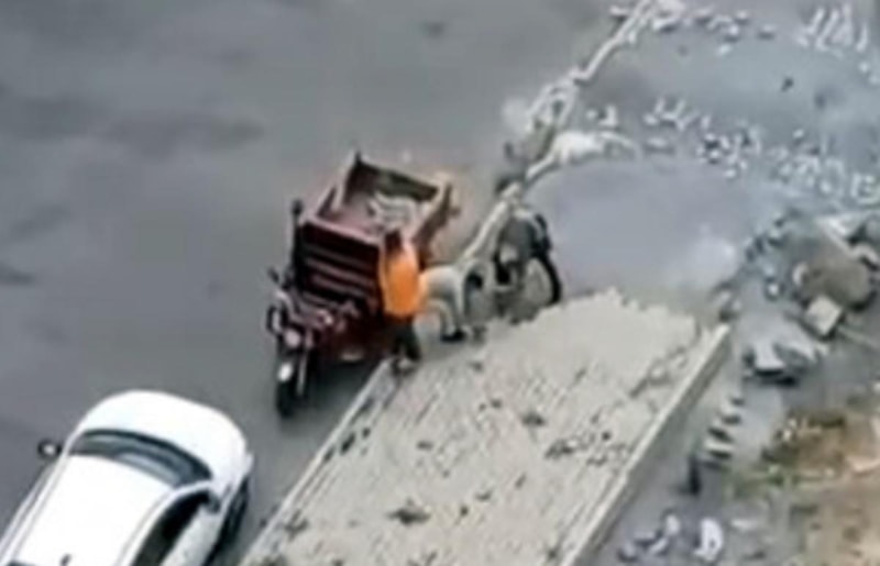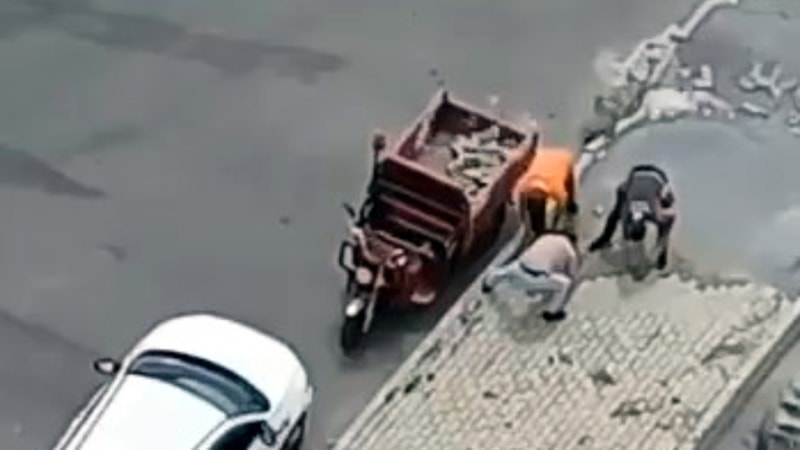 Aradan bir hafta geçtikten sonra bu sefer de İstanbul Caddesi'ndeki bir sitenin önüne 3 tekerlekli motosiklet ile gelen başka kişiler, orada bulunan kaldırım taşlarından bir bölümünü alıp gitti.
