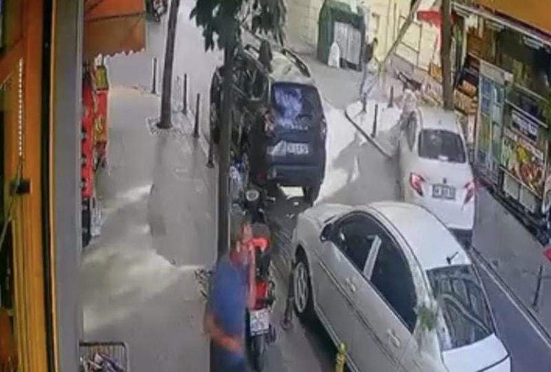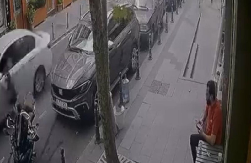 Kaza anı caddedeki bir iş yerinin güvenlik kamerası tarafından kaydedildi.