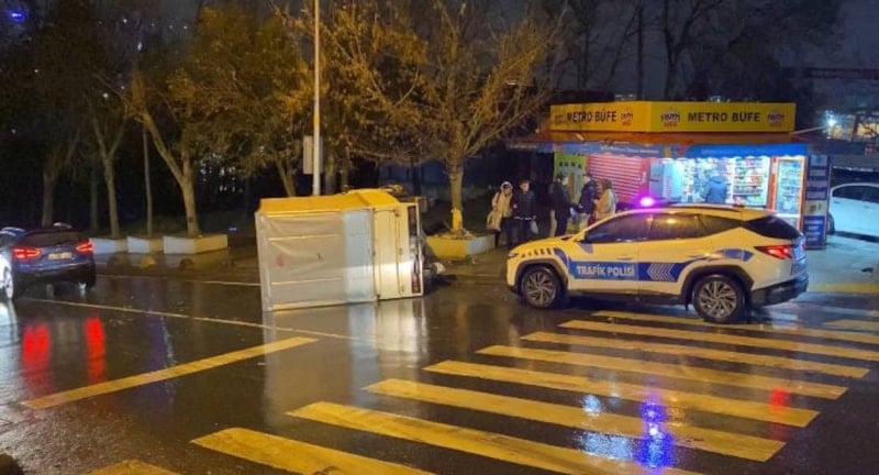 İstanbul Bayrampaşa'da seyir halindeki kamyonet, kontrolden çıkarak yan yattı.