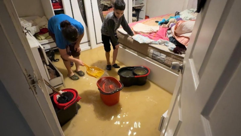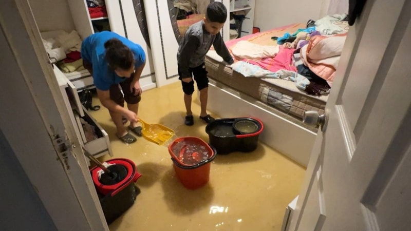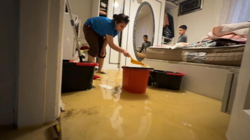 Irmak, İSKİ ekibi gelene kadar iki çocuğu ile evdeki suyu kovalara doldurup dışarı çıkarmaya çalıştı.