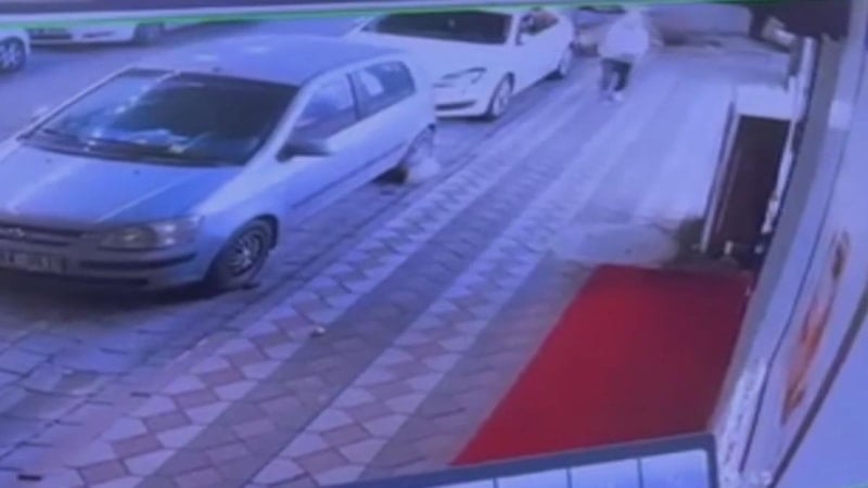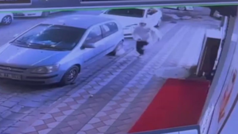 Olay anı çevredeki bir iş yerinin güvenlik kamerasıyla kaydedildi.