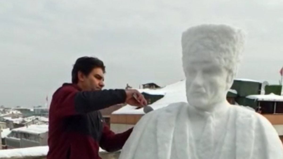 Yaklaşık 4 saatte tamamlandığı söylenen 'kardan Atatürk heykeli', sosyal medyada beğeni topladı.