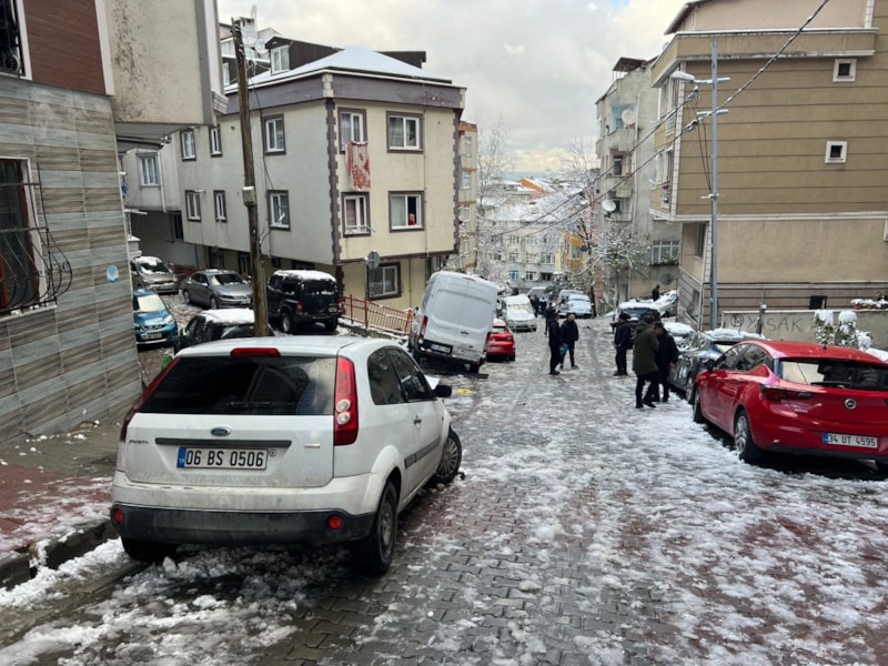 Çağlayan'da ise önceki gün yaşanan olayda, buzlanmanın olduğu sokaktan ilerleyen çöp kamyonu kaymaya başladı.