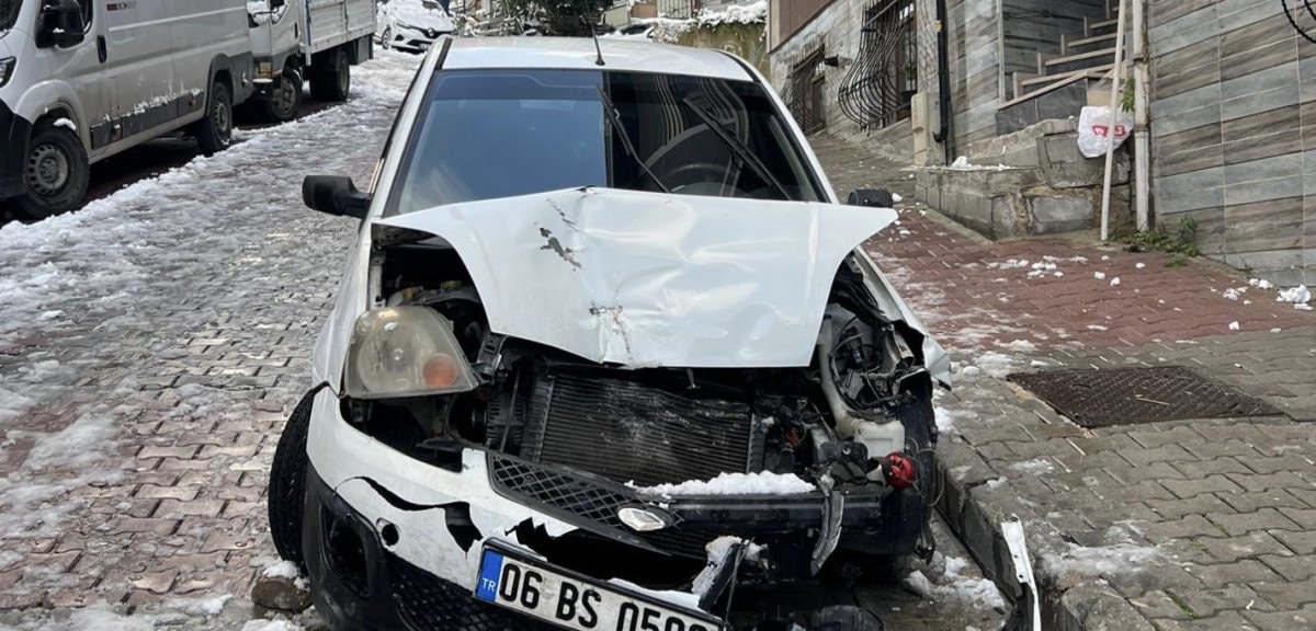Nurtepe Mahallesi'nde aynı saatlerde yaşanan başka bir kazada ise karlı yolda kayan bir araç park halindeki araca çarparak durabildi.