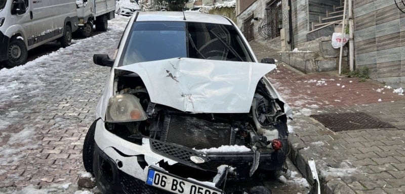 Yahya Kemal Mahallesi'ndeki bir diğer kazada ise, karlı yolda ilerlemeye çalışan araç, önündeki otomobile çarparak kazaya neden oldu.