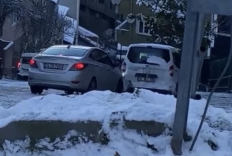 Talatpaşa Mahallesi'nde önceki gün yaşanan bir başka kazada ise, buzlanmanın olduğu sokakta yokuştan inmeye çalışan otomobil, kayarak park halindeki araca çarptı.
