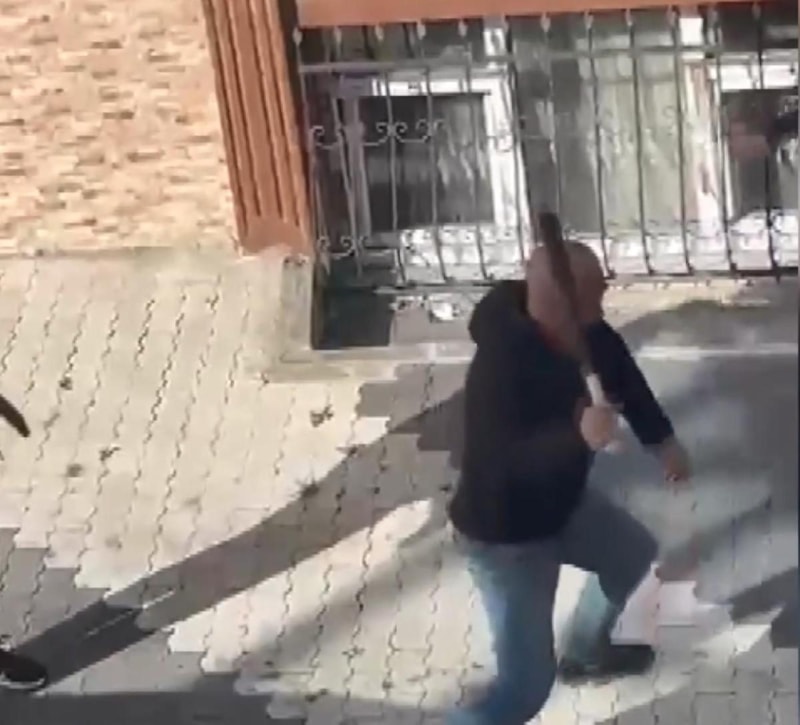 Beyzbol sopalı kavga anları cep telefonu kamerasıyla kaydedildi.