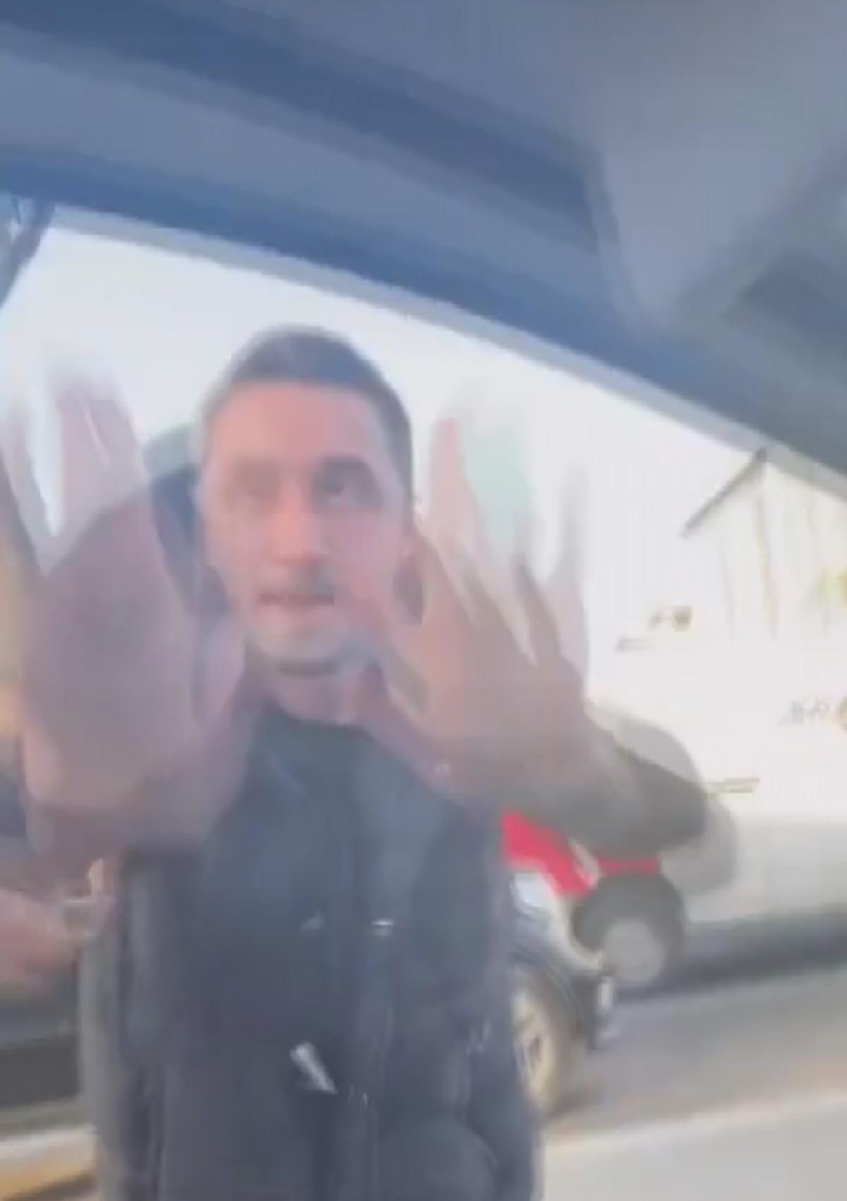 Daha sonra sürücü, ışıklarda otomobilinden inerek Furkan E.'nin hafif ticari aracına doğru yöneldi ve defalarca camına vurarak inmesini istedi.