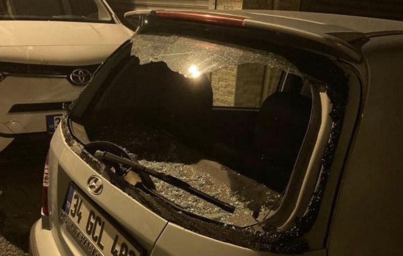Olayın ardından komşularının haber vermesi üzerine aşağı inen Fatih Ene, aracının arka camının kırıldığını gördü.