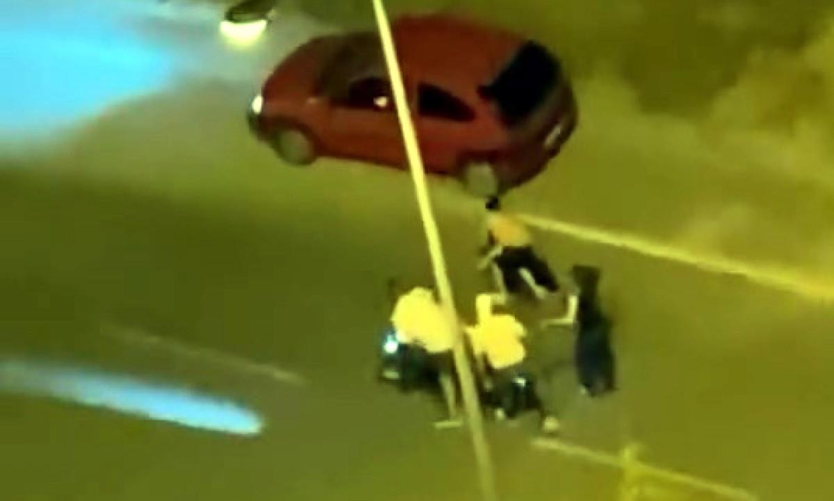 Hemen yakındaki bir site sakini tarafından cep telefonu ile kaydedilen görüntüde; araçta bulunan kadın da bu kişileri ayırmaya çalıştı.