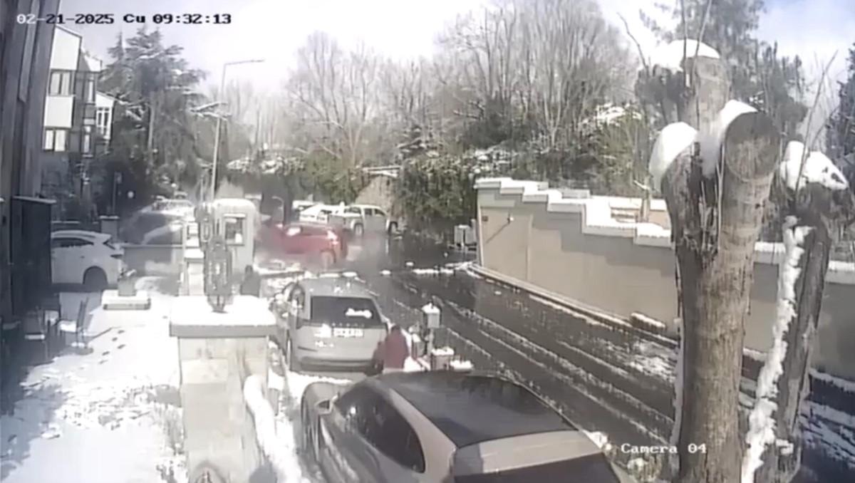 O sırada sokakta babasıyla kar topu oynayan çocuk ise kazada yaralanmaktan son anda kurtuluyor.