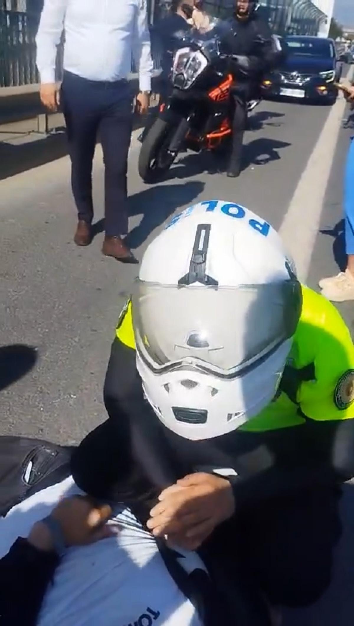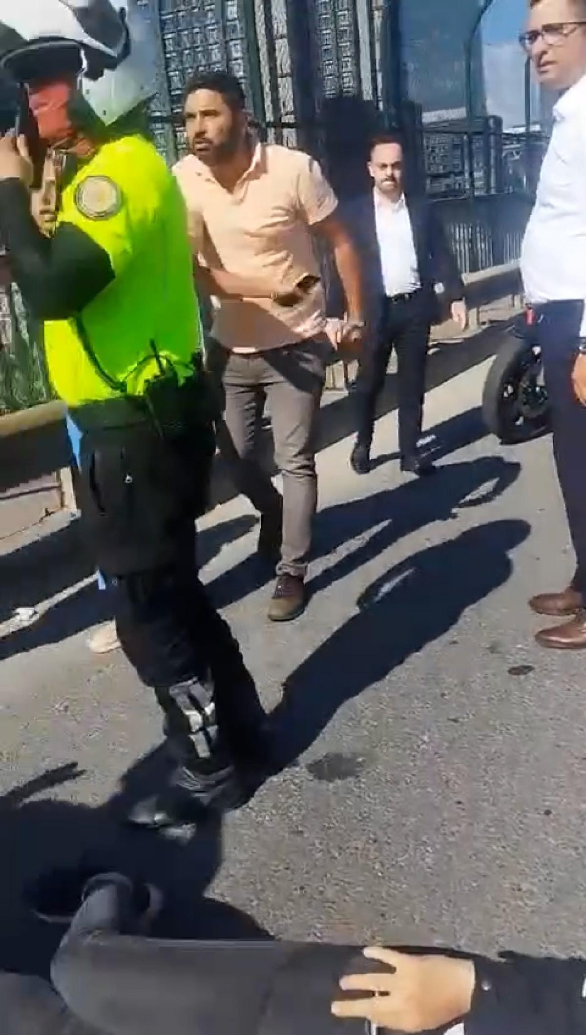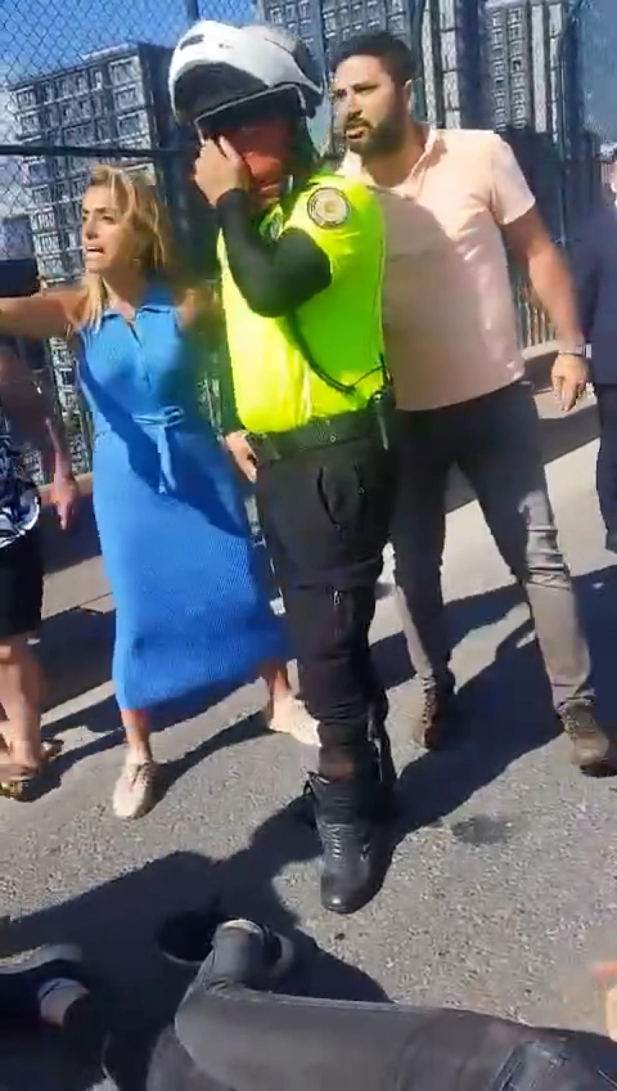 Yaralı sürücü yere düşerken, yolda seyir halinde olan başka bir araçtaki sürücü ve kazaya karışan kadın sürücü arasında kavga çıktı.