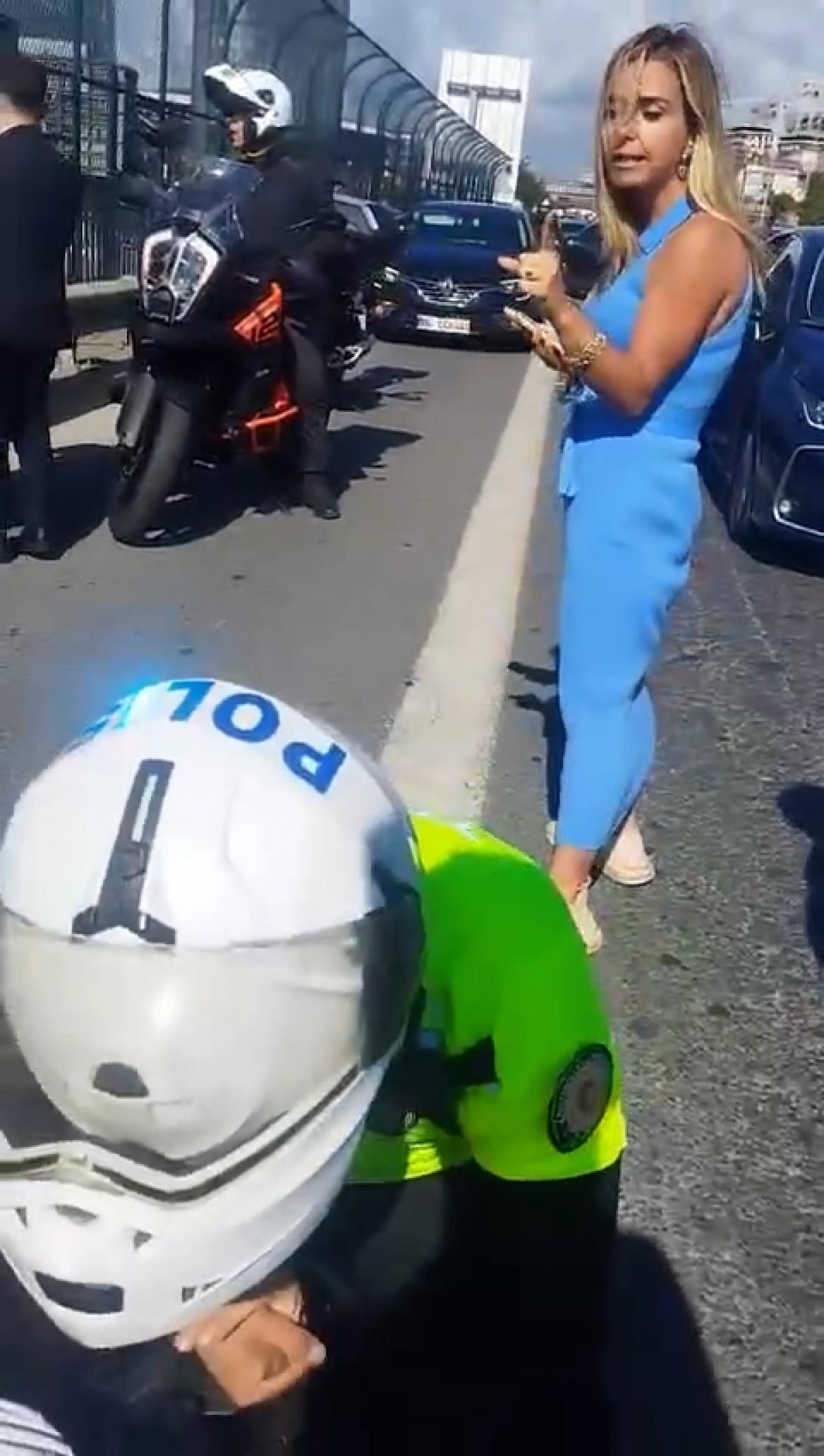 Kaza sonrası yerde yaralı olan motosiklet sürücüsüne bakmayan kadın, başka bir sürücü tarafından uyarıldı.