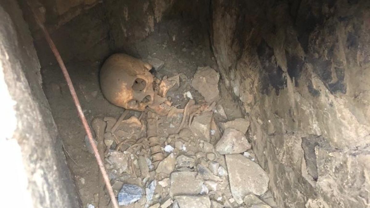 Kafatası ve iskeletin bulunduğu alan ise tahta parçalarıyla geçici olarak kapatıldı.