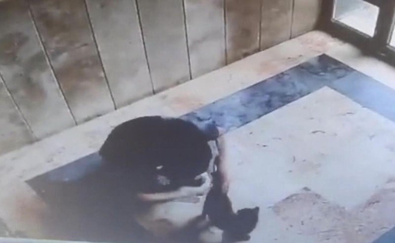 Dehşet anları ise kameraya yansırken, veterinere götürülen kedi öldü.