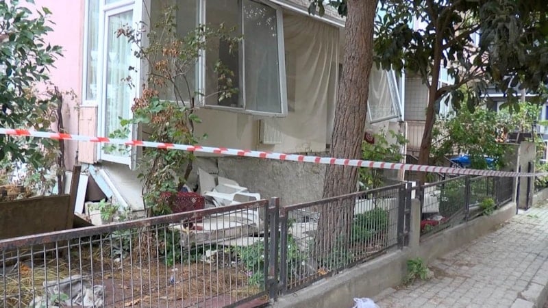 O sırada balkonda bulunan 66 yaşındaki Hayriye E., beton parçalarının altında kaldı.