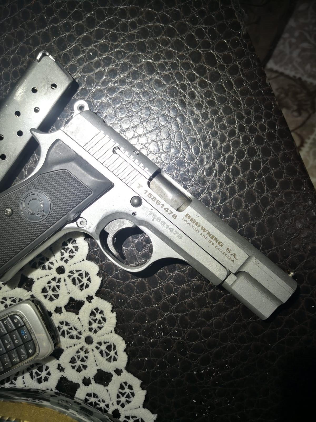 Veysi Ateş'in evinde yapılan aramalarda, 1 adet tabanca ele geçirildi.