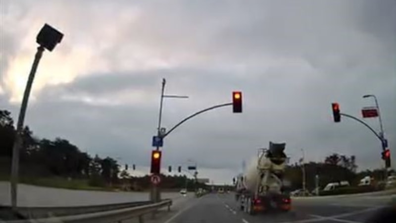 Bu sırada kavşakta yeşil ışığın yanmasıyla hareket eden diğer sürücüler, beton mikserinin önlerinden hızla geçtiğini görünce yavaşlamak zorunda kaldı.