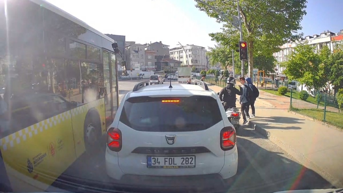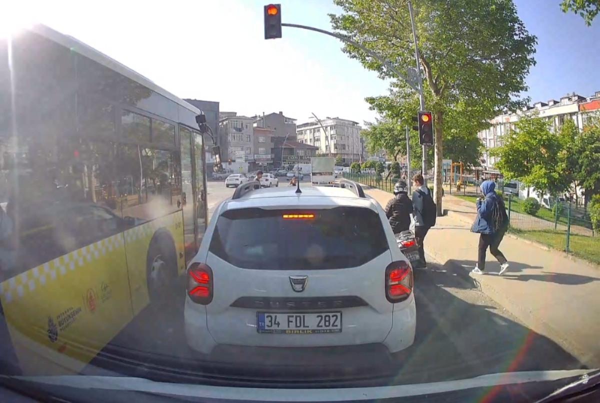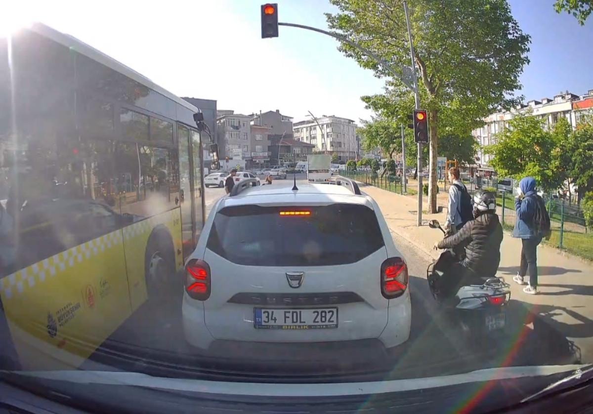 Yaşananlar, kırmızı ışıkta bekleyen başka bir aracın araç içi kamerasına yansıdı.