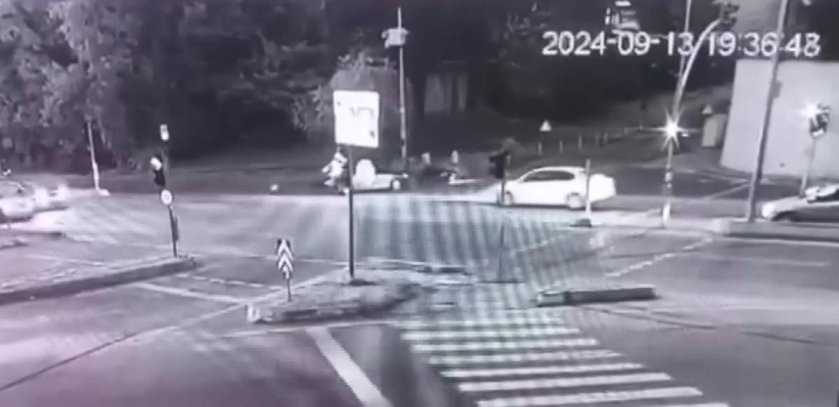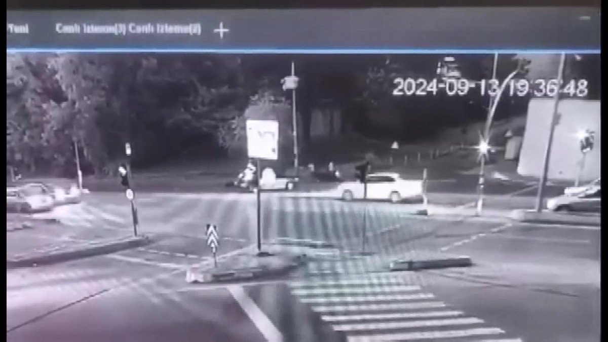 Görüntülerde; ışık ihlali yaparak dönüş yapmak isteyen otomobil sürücüsü, motosikletliye çarpıyor.