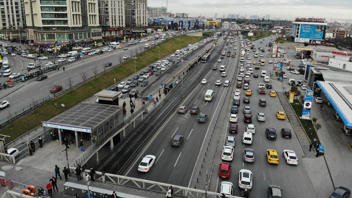 İstanbul'da koronavirüs salgını nedeniyle uygulanan hafta sonu sokağa çıkma kısıtlaması öncesinde trafik yoğunluğu yaşandı.