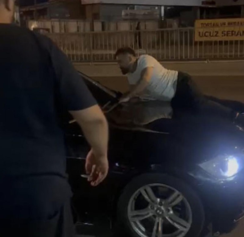 Tartışmanın büyümesi üzerine Dudullu Caddesi'nin girişinde aracın önünü kesen erkek şahıs, kaputun üzerine yatarak aracın ilerlemesini engellemeye çalıştı.