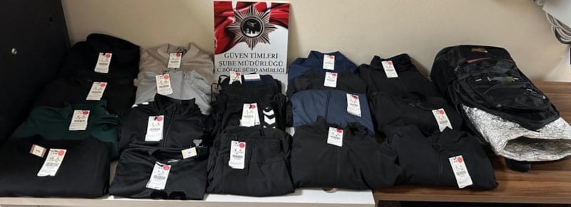 Şüphelilerin kullandıkları araçta yapılan aramada, farklı mağazalardan çalındığı belirlenen çok sayıda giyim eşyası ele geçirildi.