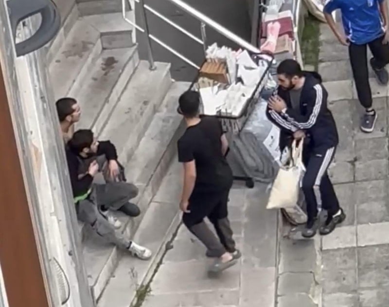Kağıthane'de 15 yaşındaki E.N.’yi rahatsız ettikleri öne sürülen M.M.B. ile K.A., ağabeyi M.C.N. tarafından çıkan kavgada bıçaklandı. Sokağın karıştığı olayda M.M.B. hafif ve K.A. ise ağır yaralandı. Yaşananlar cep telefonu kamerasına yansıdı.