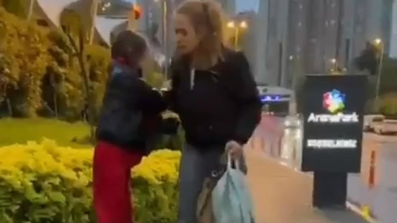 Çevredeki vatandaşların "Önce git tedavi ol, kızı böyle köşeye sıkıştırma" demesi üzerine anne, "Alın sizin olsun" diyerek arkasını dönüp uzaklaşmaya başladı.