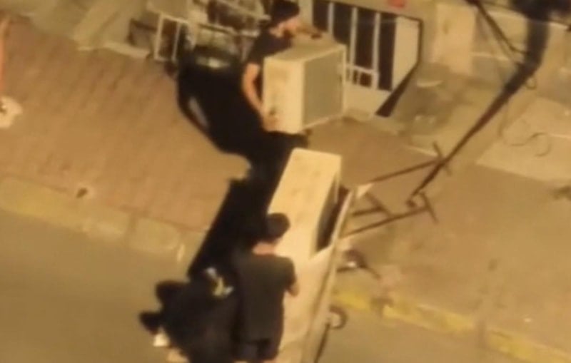 İstanbul Şişli'de çekçek aracıyla sokağa gelen 2 şüpheli, binaya ait klima motorunu sökmeye başladı.