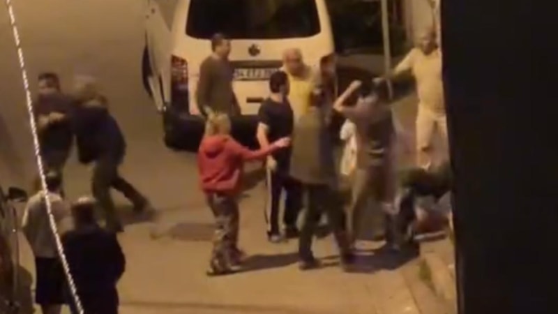 Kavgayı çevredekiler cep telefonu kamerasıyla kaydetti.