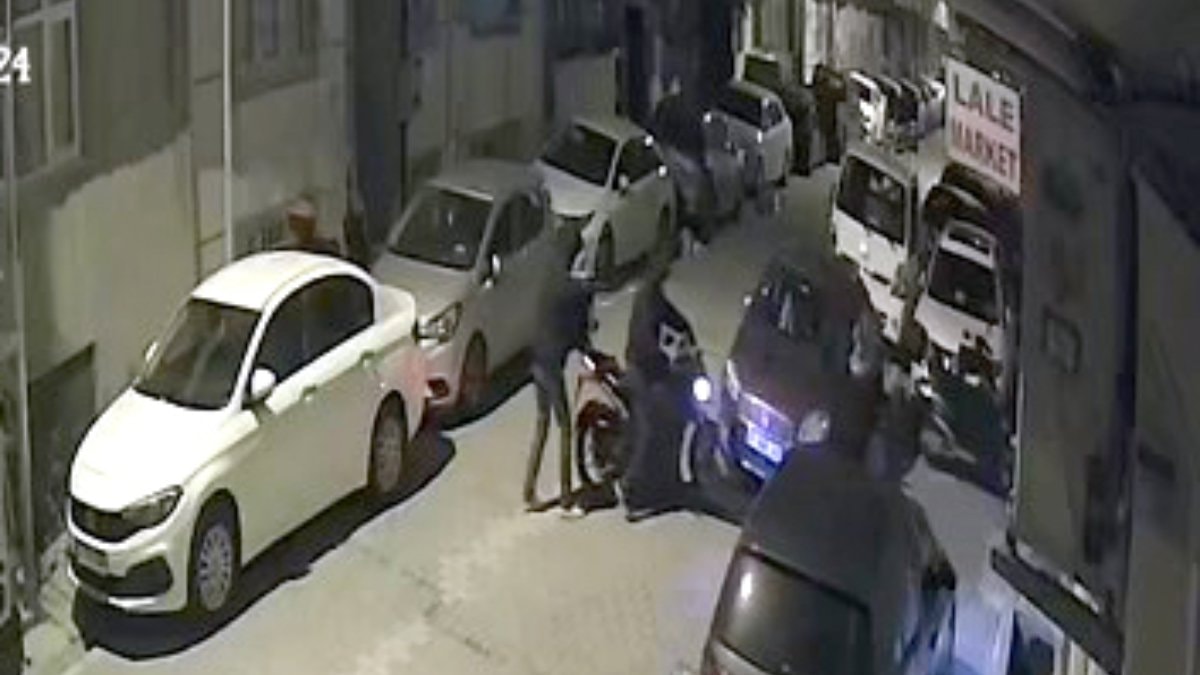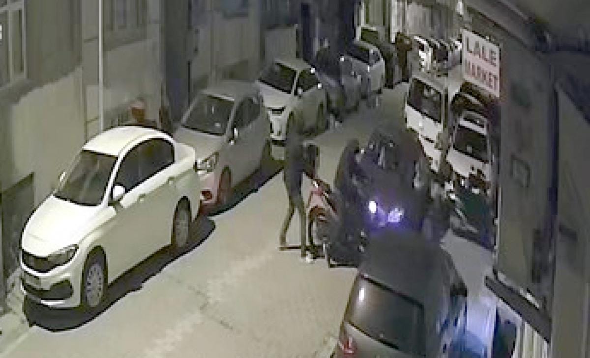 İstanbul Esenyurt İnönü Mahallesi 353’üncü Sokak’ta kapüşonlu 2 kişi, kaldırımda park halindeki motosikleti fark etti.